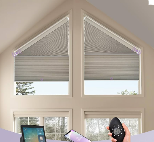 Угловые оконные оттенки состоят из альтернативного и гибкого ответа для наблюдения за светом, расширения конфиденциальности и предлагая стилистические запросы на макет в окнах, которые не являются вертикальными с полом ( окна наклоненных в , частях или треугольные окна ).